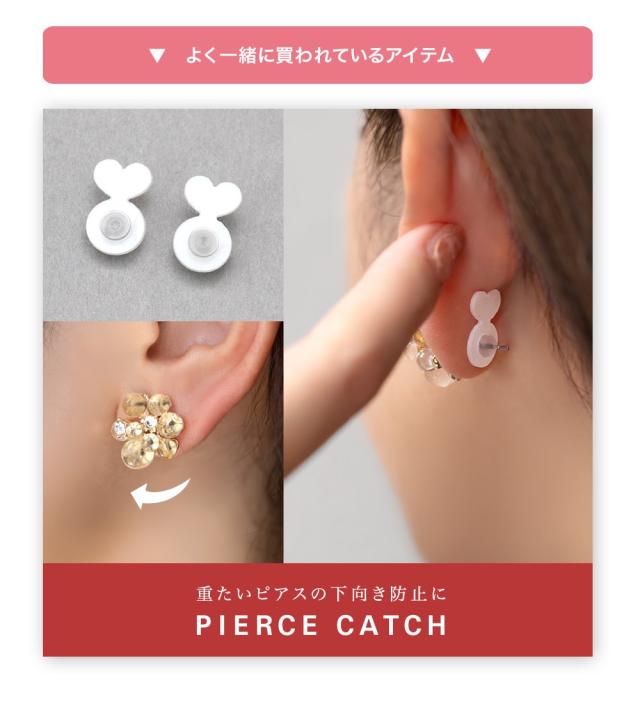 ピアス チタンポスト 低アレルギー レディース フラワー パール パヴェ メタルボール バブルパール スフィア ミックス 大ぶり 大きめ シリコンキャッチ 大人 ゴールド シルバー