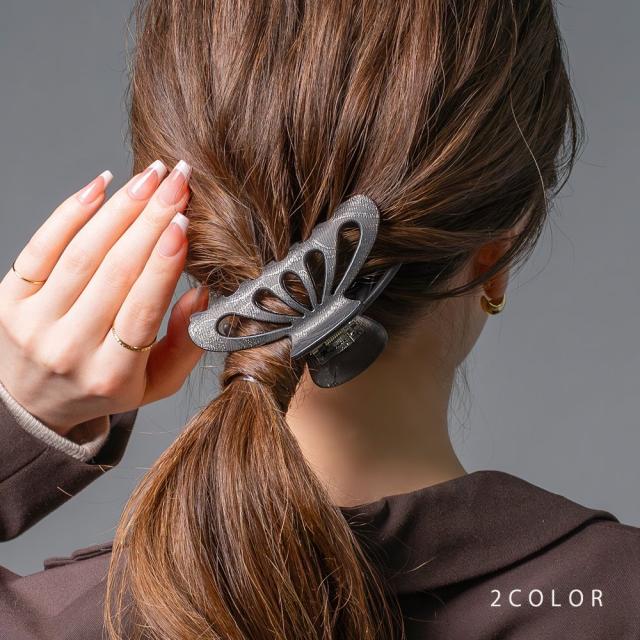 個性的で美しいジャガード模様のシェル型バンスクリップ 。さりげないジャガード模様が上品さと華やかさを演出◎ラフなまとめ髪にさっと挟むだけでこなれたアクセントを添えてくれます。
