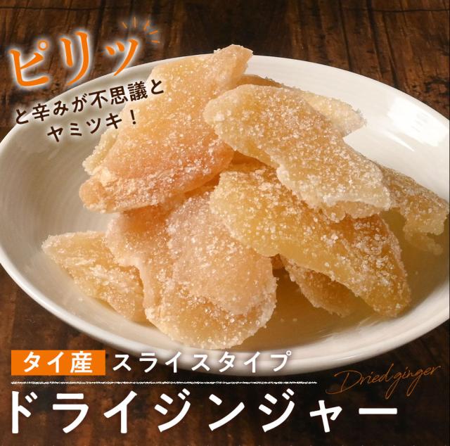 【冬季限定】 ドライジンジャー 200g ドライフルーツ スライスタイプ 送料無料 ジンジャー 生姜 生姜糖 生姜甘納豆 保存食 非常食 保存に便利なチャック付き