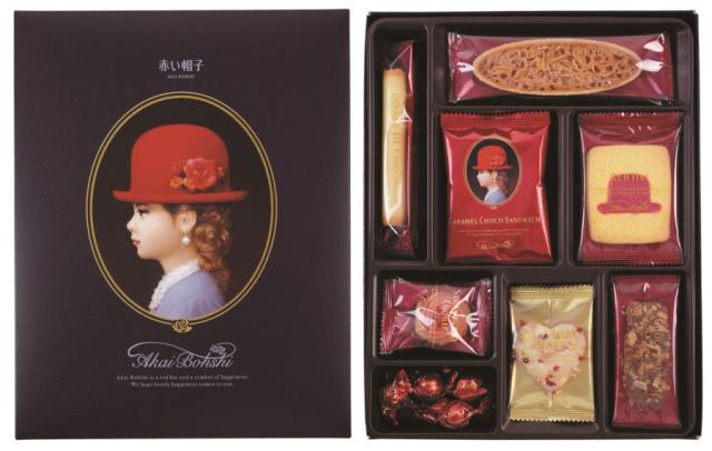 商品内容:レッドハット×2、キャラメルショコラサンド×2、ストロベリークッキー×2、ナッツベリーハート×2、チョコクランチ×3、ホワイトボール(アップル風味)×5、ラングドシャロール×2、バニラアーモンド×2