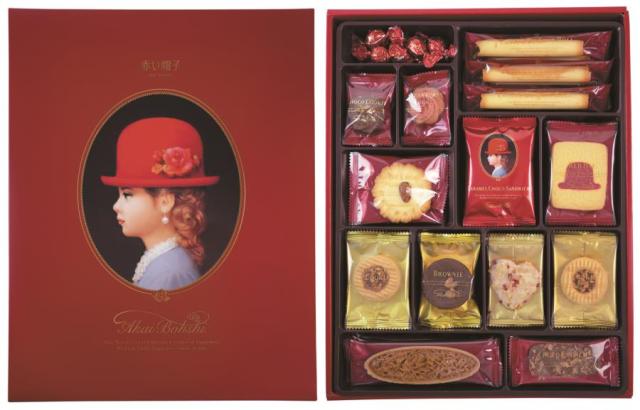 商品内容:レッドハット×3、キャラメルショコラサンド×2、チョコクッキー×3、ストロベリークッキー×3、ナッツベリーハート×4、ホワイトチョコアーモンド×3、ブラウニー×2、フロランタンクッキー×4、チョコクランチ×4、ホワイトボール(アップル風味)×8、ラングドシャロール×6、バニラアーモンド×3