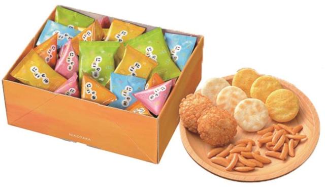 商品内容:柿の種5gx9、柿の種梅しそ5gx9、揚一番1枚x9、小丸せんべいしお味1枚x9、小丸せんべいカレー味1枚x9