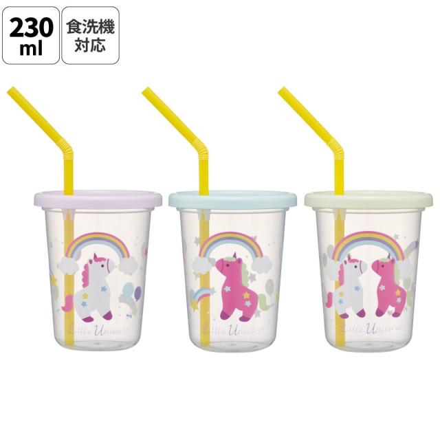 ストロー付きコップ 3個 セット ストロー コップ タンブラー 蓋付き こぼれない skater スケーター SIH2ST リトルユニコーン ユニコーン柄 メルヘン 女の子 女子【ストロー付き 割れない ストローコップ プラスチック】