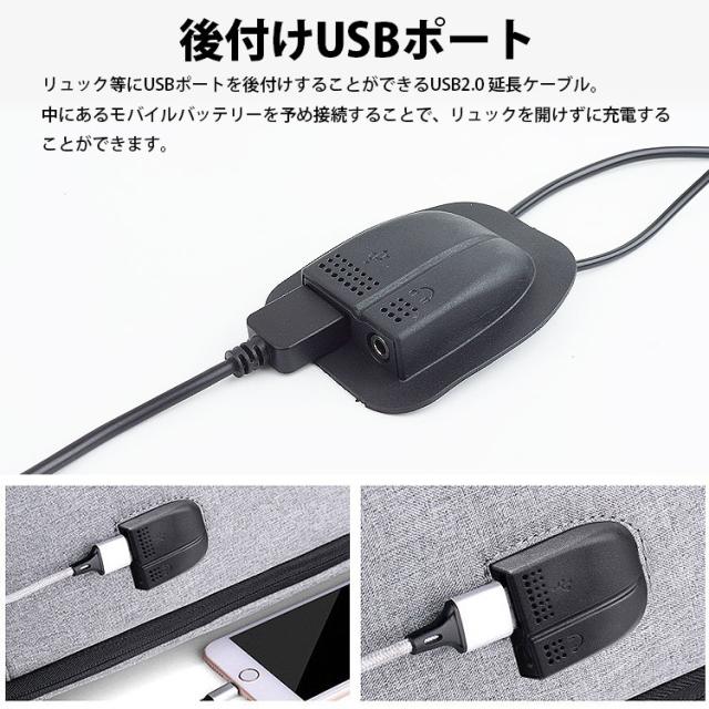 リュック等にUSBポートを後付けすることができるUSB2.0 延長ケーブル。