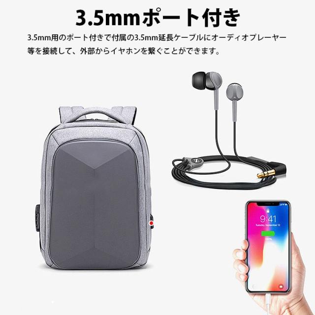 中にあるモバイルバッテリーを予め接続することで、リュックを開けずに充電することができます。