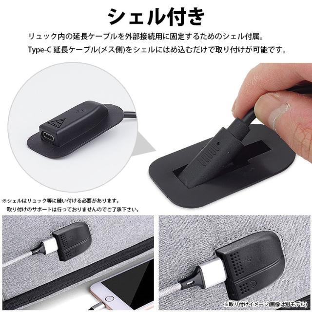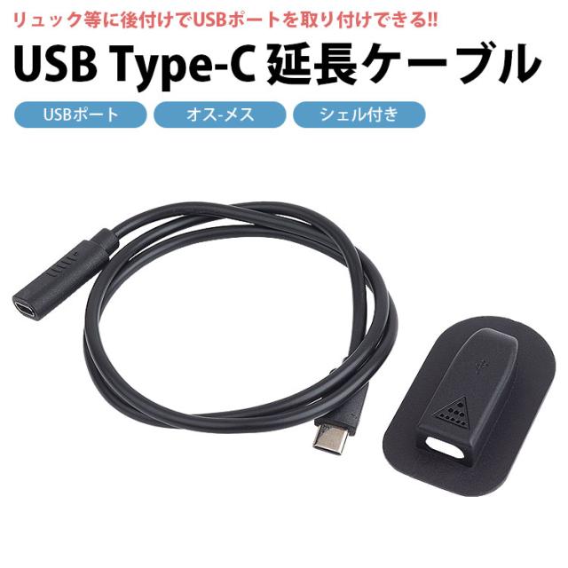 USB 延長ケーブル USBポート 後付け 外付け Type-C USB C タイプC シェル付き リュック カバン バックパック USB ケーブル 約60cm 充電 外部接続 PR-CONEUSB02【メール便 送料無料】