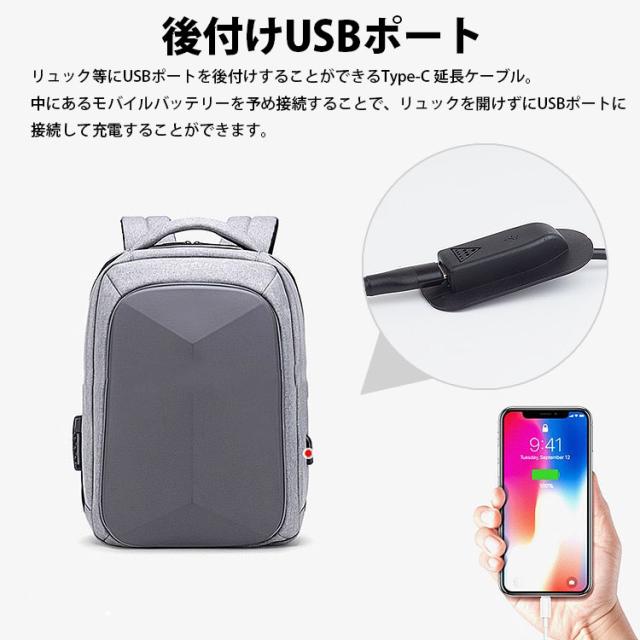 リュック等にUSBポートを後付けすることができるType-C 延長ケーブル。