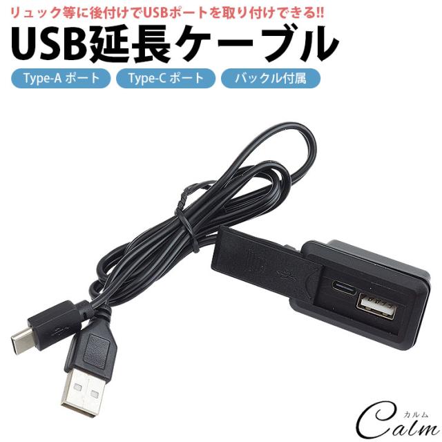 USB 延長ケーブル USBポート 後付け Type-A Type-C バックル付属 外付け 外部接続 USB C タイプC 約60cm 充電用 蓋付き