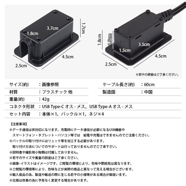 リュック等にType-A&Type-CのUSBポートを後付けすることができる 延長ケーブル。