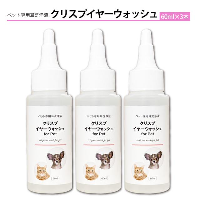 犬 猫 ペット用 耳洗浄液 [クリスプイヤーウォッシュ 3本セット] イヤークリーナー 天然成分100% ノンアルコール \累計13000本突破/耳そうじ 耳ケア 耳クリーナー ニオイケア イヤーローション 耳掃除 60mlx3本セット