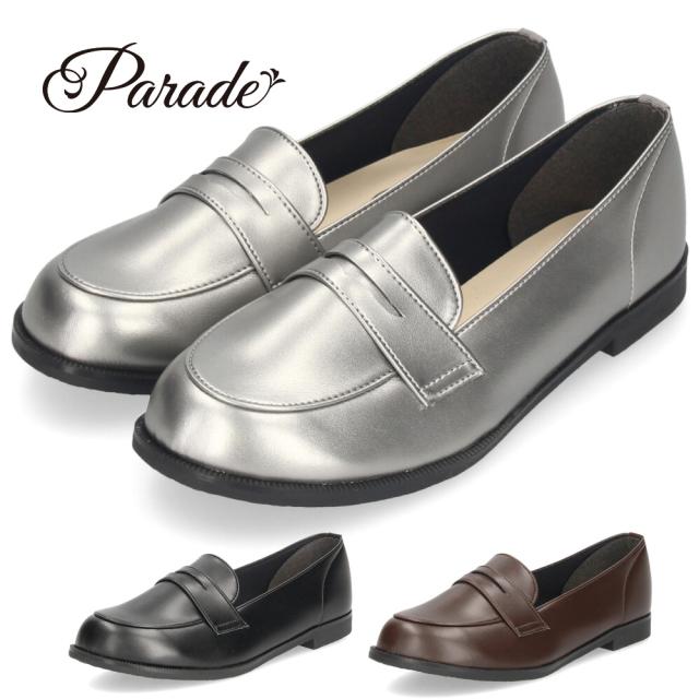 ローファー レディース 痛くない 柔らかい ローヒール 歩きやすい 靴 パンプス 軽い 疲れない 黒 茶色 ブラック ダークブラウン シルバー 日本製 34005 パレード Parade