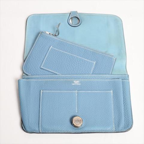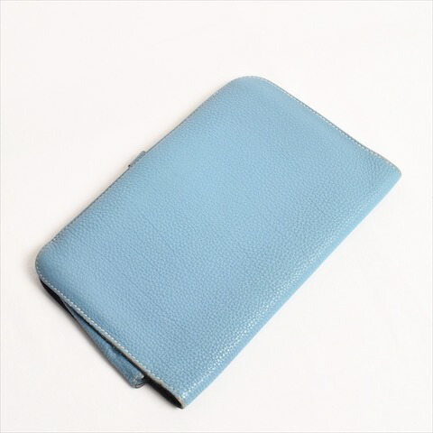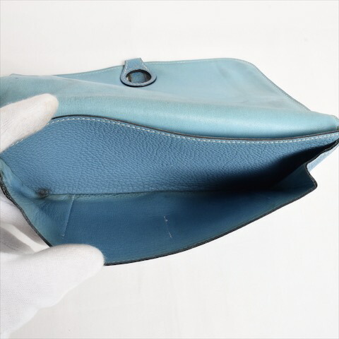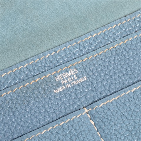 エルメス HERMES ドゴンGM 二つ折り財布 長財布 トリヨンクレマンス レザー シルバー金具 財布 レディース メンズ ブルージーン 青 水色 p2020051324