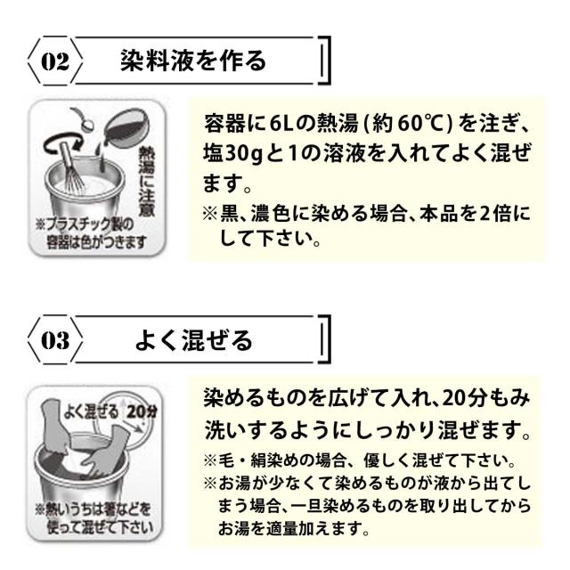 ※濃色(黒、紺、茶)は染料を2倍にして下さい