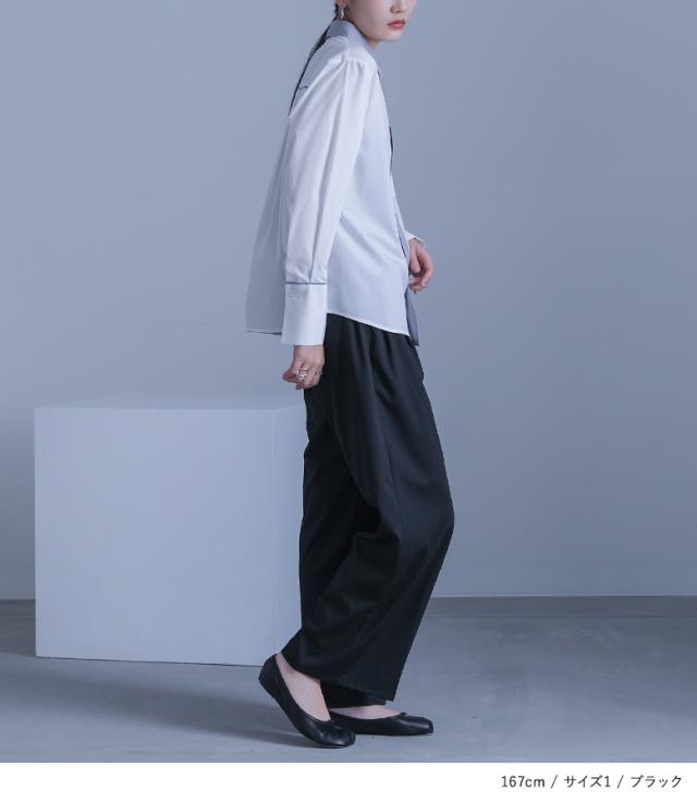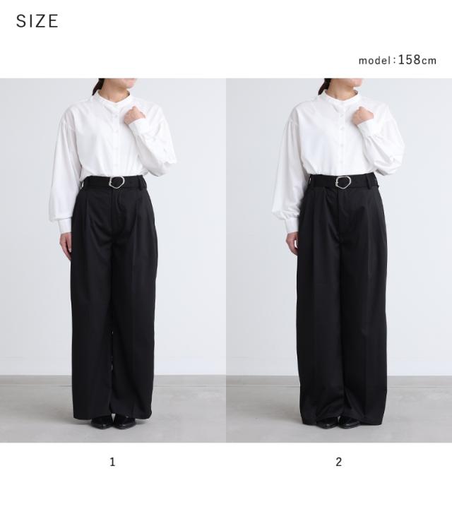 ■デザイン 大きめの変形バックル付きベルトがポイントになったワイドパンツ。ストレートなシルエットと前側に入ったタックですっきり見えが叶い、穿くだけで綺麗めな雰囲気を演出できます。 ■コーディネート トップスをインすることで、変形バックルをポイントにした印象的なスタイリングに。トップスをインしないスタイリングの場合は、シャツのボタンを開けてバックルをチラ見せすると、こなれ感のある印象が作り出せます。デザインシャツと合わせることでモードな印象が際立ち、同系統のスーツ生地のジャケットと合わせることでオケージョンにも合うコーディネートが完成します。足元はパンプスやローファーと合わせてクールに決めたり、スニーカーでカジュアルダウンさせたスタイリングもオススメです。 ■素材 さらりとした肌触りで上品な印象のスーツ生地。滑りの良い裏地付きで、コーディネート次第でロングシーズンご着用いただけます。 |