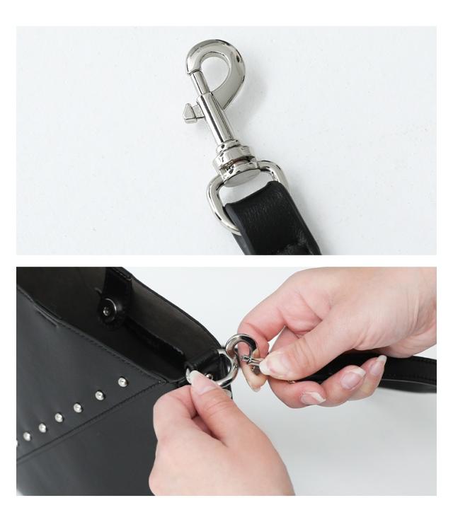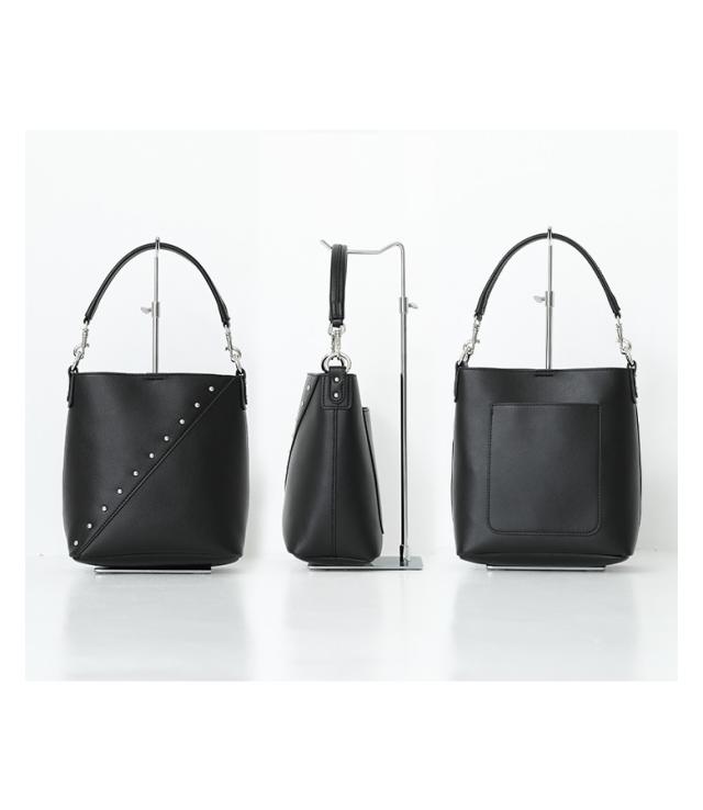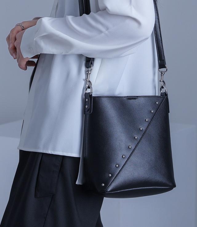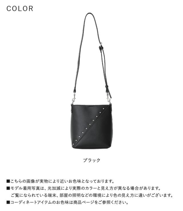 『リサイクルレザースタッズバッグ』【メール便不可】【50】[ショルダーバッグ レディース ファッション雑貨 かばん 鞄 ハンドバッグ リサイクルレザー 肩掛け 調節可能 取り外し可能 ポケット]