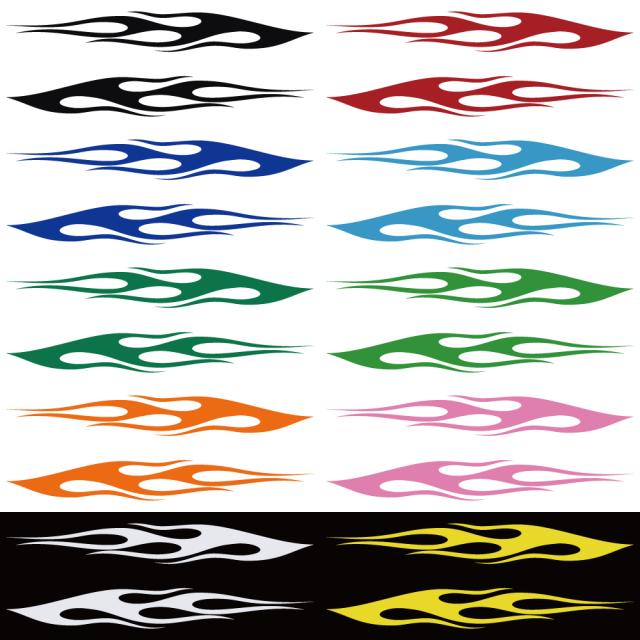 デカールステッカー 【 ファイヤーパターン B L 左右反転 2枚セット 】 選べる10色 縦5.3cm×横40cm オリジナルデザイン バイナル ステッカー カスタム ドレスアップ