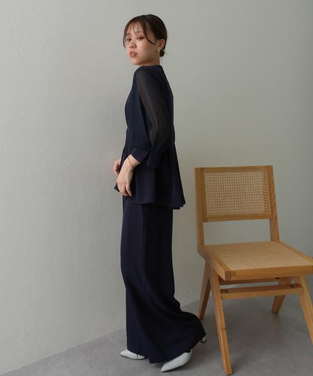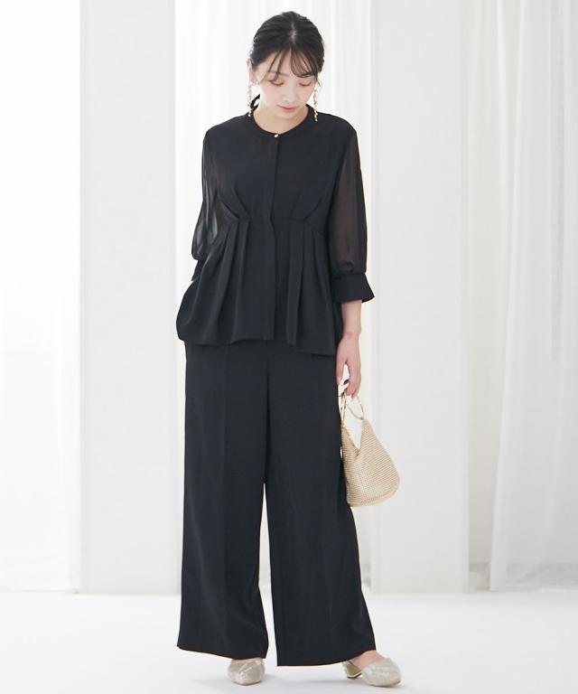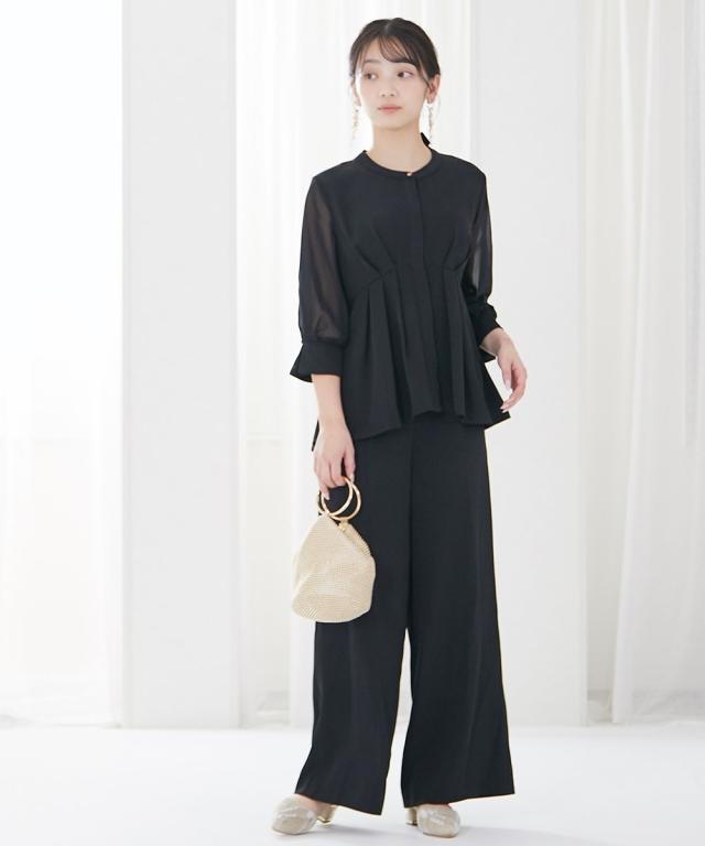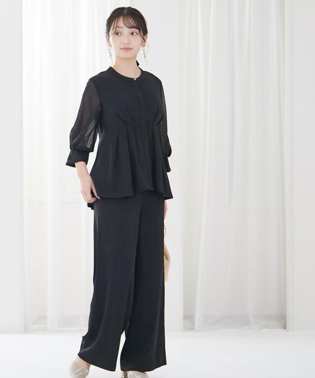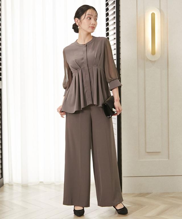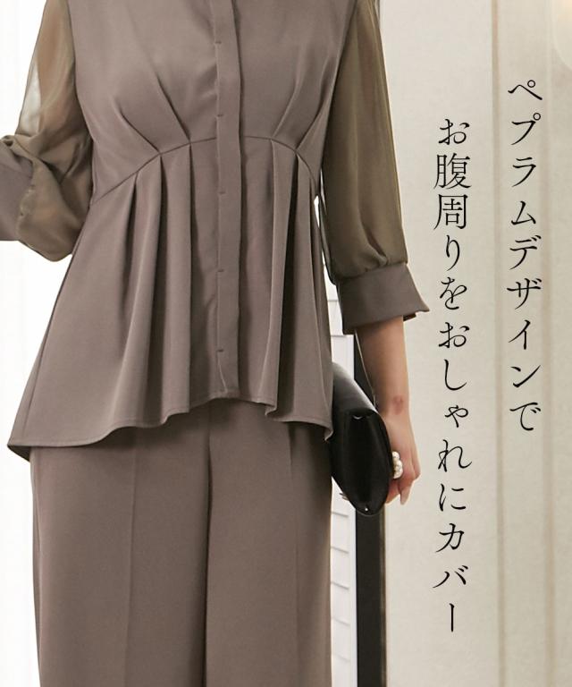 パーティドレス パンツ レディース 結婚式 パーティー ドレス ペプラム デザイン ブラウス +ワイド セットアップ 二次会 披露宴 LL/3L ニッセン nissen