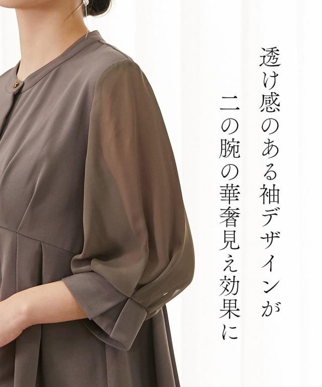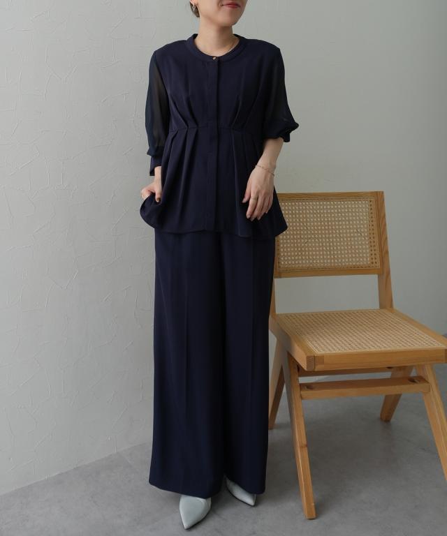 ペプラムデザインとワイドパンツの体型カバーに優れたセットアップドレス ●こだわりポイント ハイウエスト位置のペプラムデザインがスタイルアップと体型カバーを実現。 ワイドパンツで体型を拾いにくい設計に。 首元のさりげないゴールドボタンがアクセントに。 前から見えない隠れデザインボタンもこだわりのポイント。 ポケット付きなのも、嬉しいポイントです。 ウエストは後ゴム入りで着心地抜群です。 程よい抜け感があり、パーティーシーンだけでなくデイリーにも使えるドレスです。 ●体型カバーポイント ワイドパンツで体型を拾いにくい設計に。 透け感のある袖レースは華奢見せや二の腕カバーが期待できます。 ●おすすめ着用シーン 【結婚式】【二次会】【謝恩会】【同窓会】【お食事会】【お呼ばれ】【セレモニー】【演奏会】など幅広いシーンで着用いただけます。 ※注意コメント デザインによりサイズ感が異なりますので、詳しい仕立てサイズ表をご確認ください。