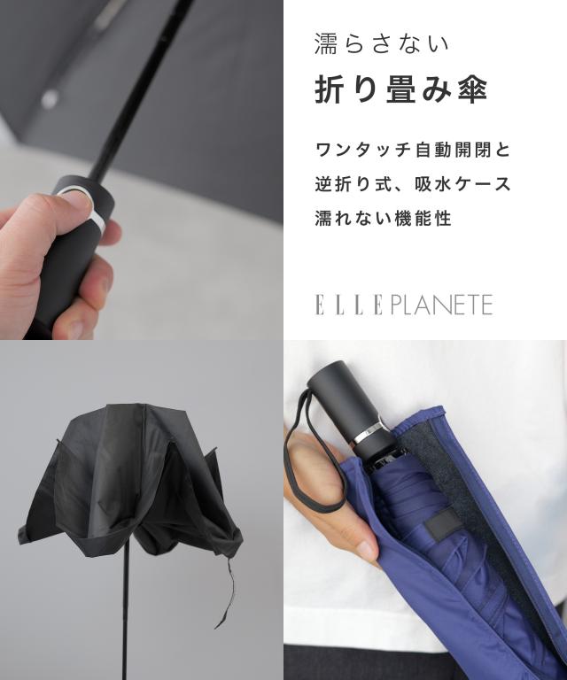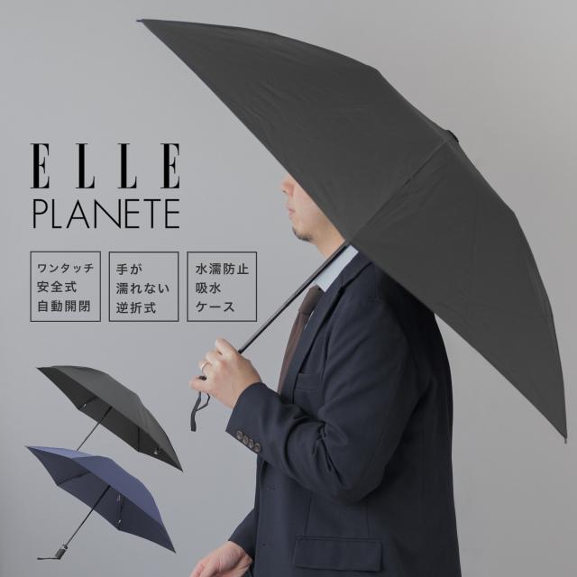 折りたたみ傘 メンズ ワンタッチ 自動開閉 コンパクト 雨傘 メンズ傘 かさ ブランド ELLE PLANETE 吸水ケース マイクロファイバーケース 濡れない ボタン式 逆さ折り 逆折り ブラック ネイビー 男性用 通勤 104cm カバンが濡れない 折り畳み 夏 梅雨 プレゼント ギフト