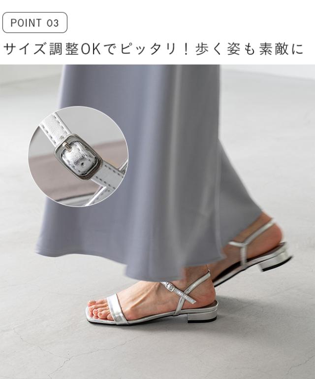 普段使いはもちろん、オフィスシーン、女子会やデートなどの大切な日の装いにも、自信を持って合わせられる、まさに大人の女性のためのサンダルです。