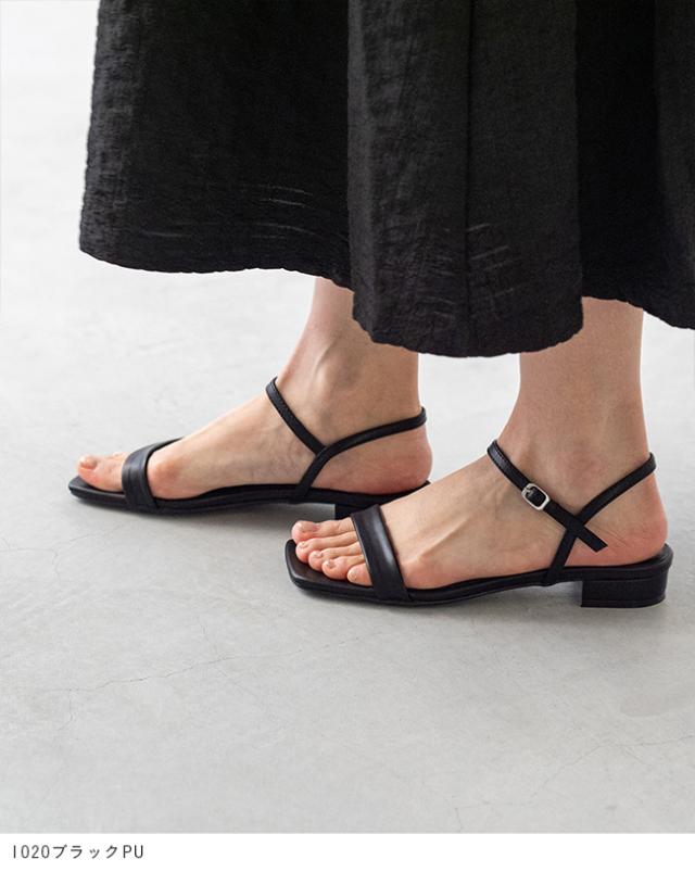 サンダル ストラップサンダル 脱げない レディース ローヒール 痛くない 歩きやすい スクエアトゥ 秒履きサンダル ゴムストラップ 黒 ブラック 送料無料