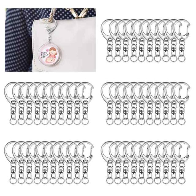 YUENWUZINIC キーホルダー金具 50個セット キーホルダー ストラップ キーリング パーツ ナスカン 回転フック 丸カン 付き ハンドメイド アクセサリー 手芸用品 手作り 素材 DIY 副資材 (シルバー)