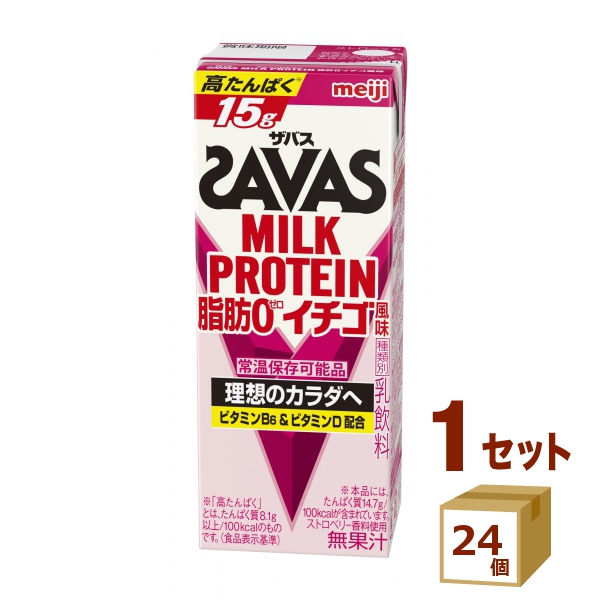 明治 ザバス MILKPROTEIN 脂肪0 イチゴ風味 200ml×24個 食品【チルドセンターより直送・同梱不可】