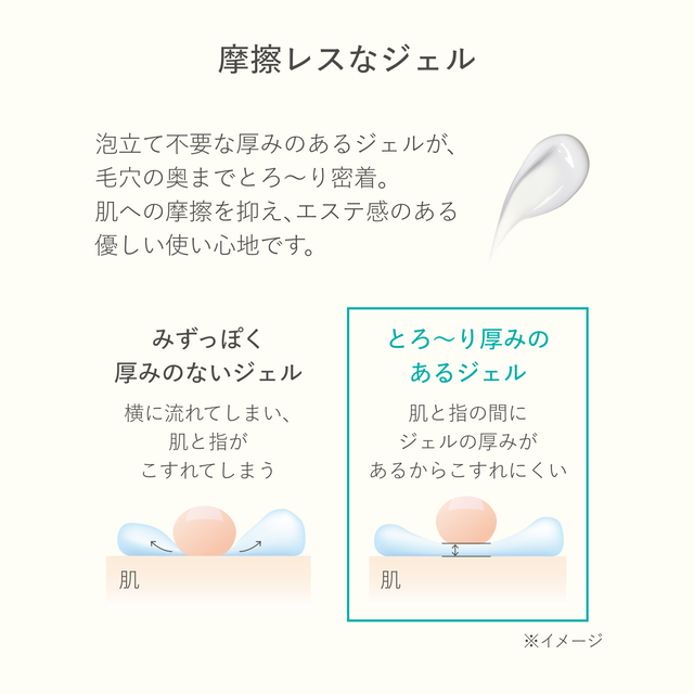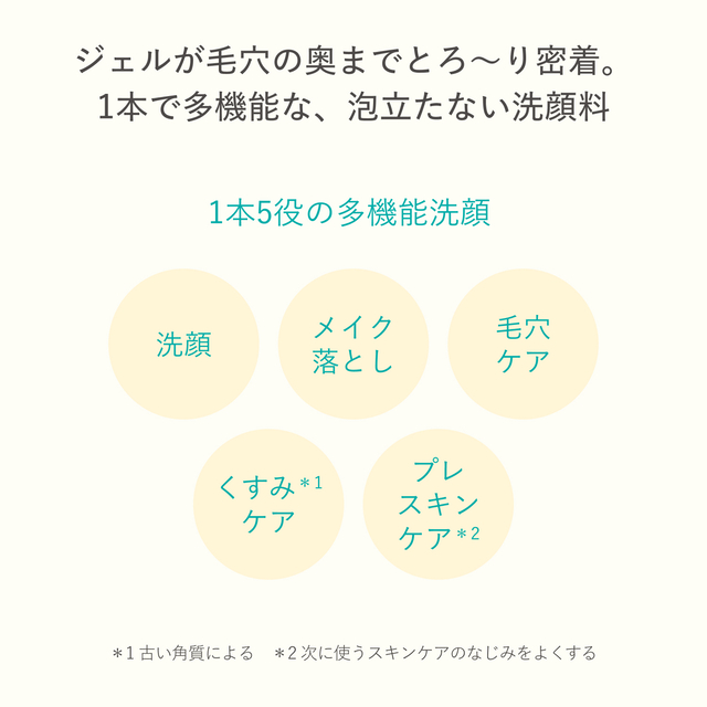 ジェルが毛穴の奥までとろ〜り密着。1品で多機能な、泡立たない洗顔料。
