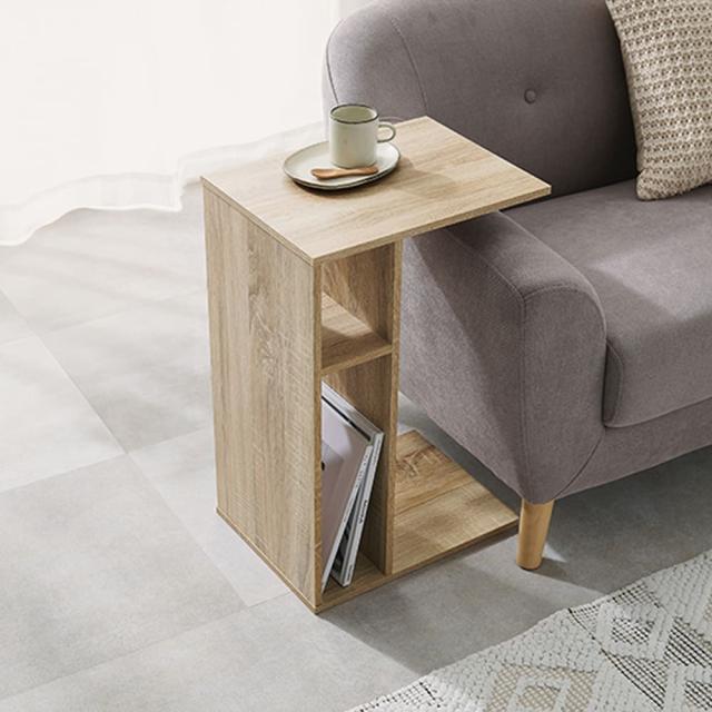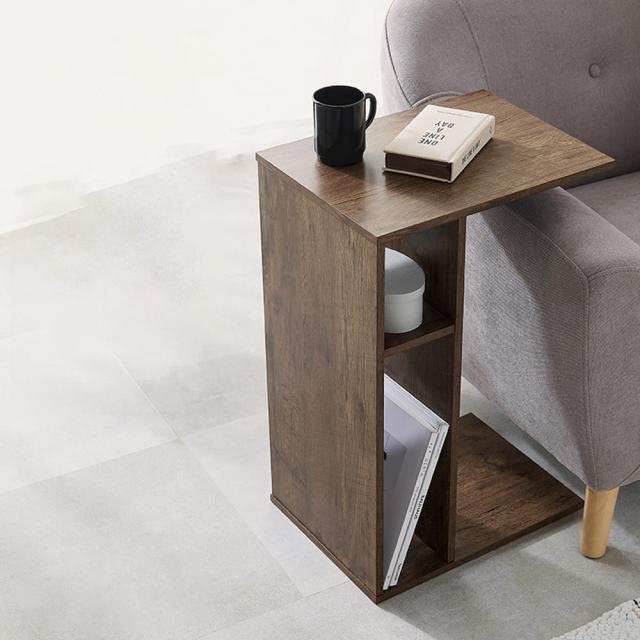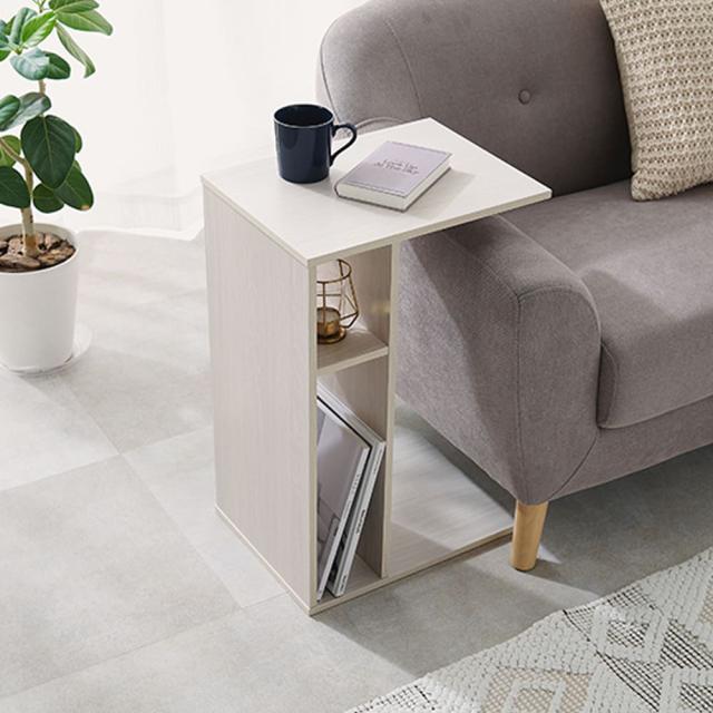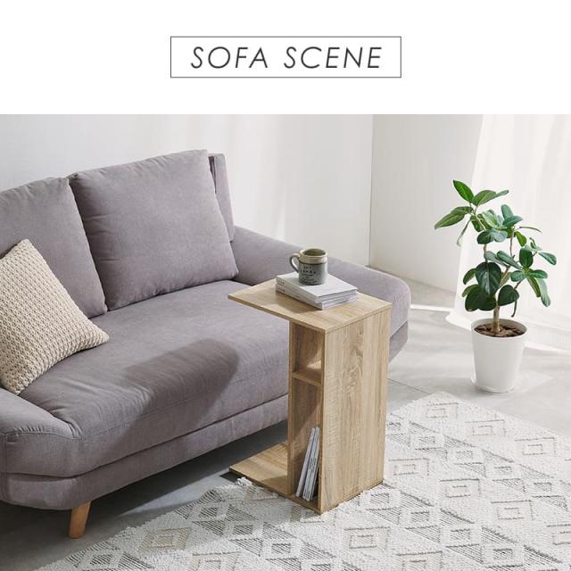 ソファ横に差し込めるサイドテーブルとしては、コの字型の形状が手元にフィットし、飲み物や読書を楽しむときにぴったり。