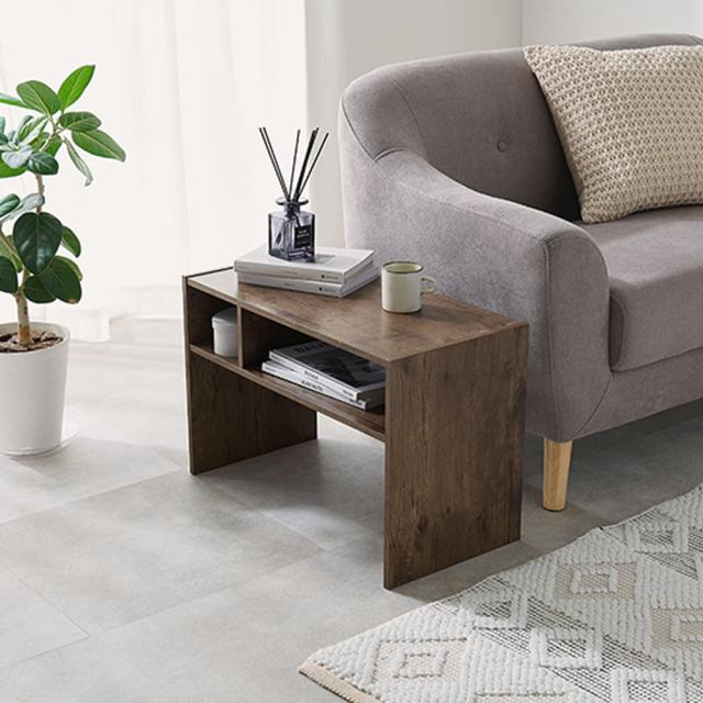 使い方に合わせてサイドテーブルとローテーブルの2通りにアレンジできる便利な2WAYデザインのテーブル。