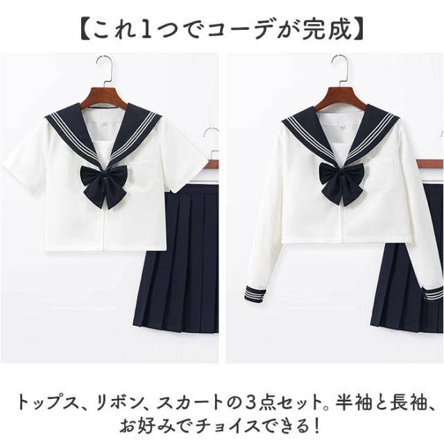 セーラー服 JK制服 3点セット 通販 学生服 上下セット トップス リボン スカート プリーツスカート 制服 ミニスカート 制服セット 衣装 コスプレ スクール コスチューム 仮装