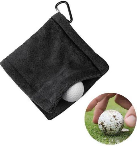 ゴルフ タオル ゴルフボール クリーナー ゴルフ用 ウエス クロス カラビナ ホルダー バックル クリーニング タオル (ブラック)
