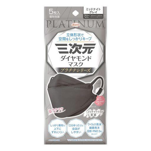 三次元ダイヤモンドマスク プラチナシリーズ フリーサイズ ミッドナイトグレイ 5枚