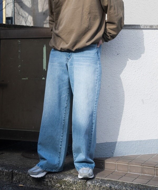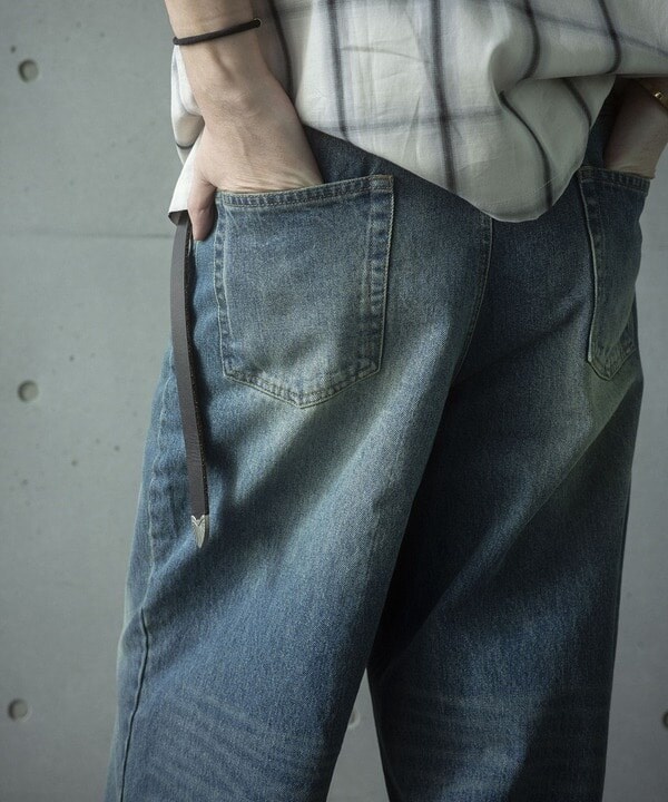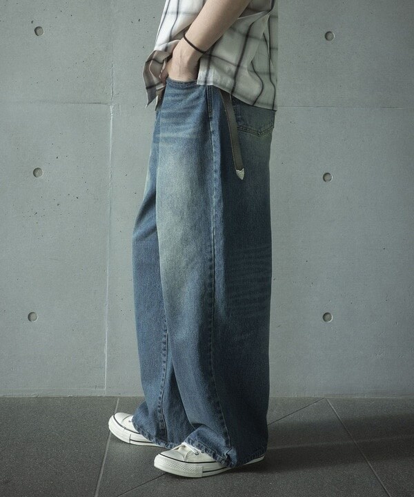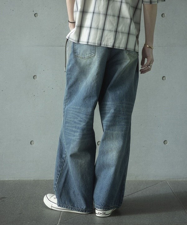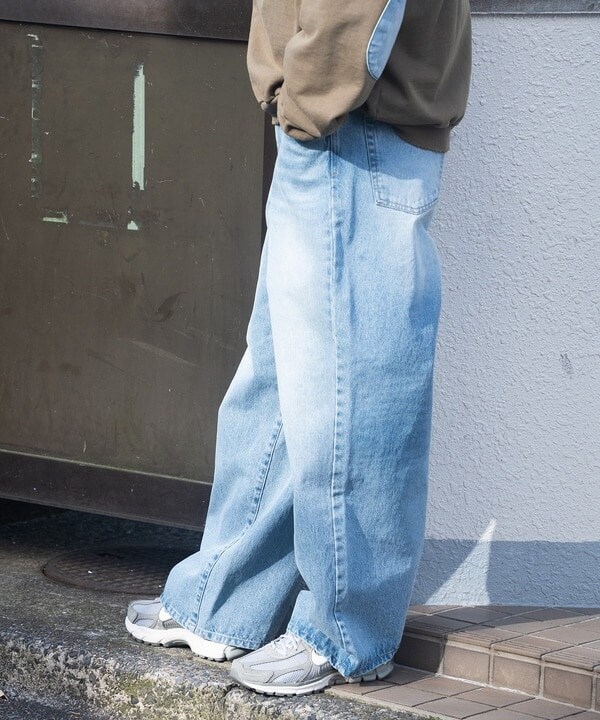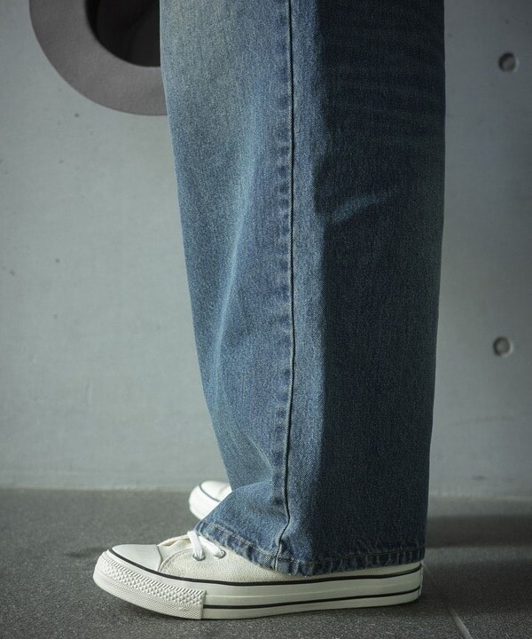 12ozのスラブデニム生地を使用したワイドデニムパンツ。