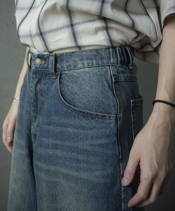【WEB限定/12oz デニム】ウエストシャーリング 5ポケット ワイドストレートパンツ