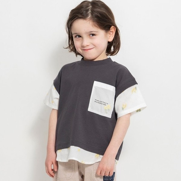 ブランシェス(branshes)/【おそろい】ミモザ刺繍半袖Tシャツ