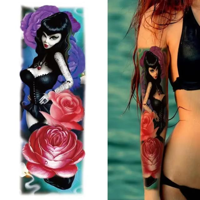 長いロングタイプの腕から手首までや太ももから膝下までにぴったりの水で貼るフェイクタトゥ—ステッカー。