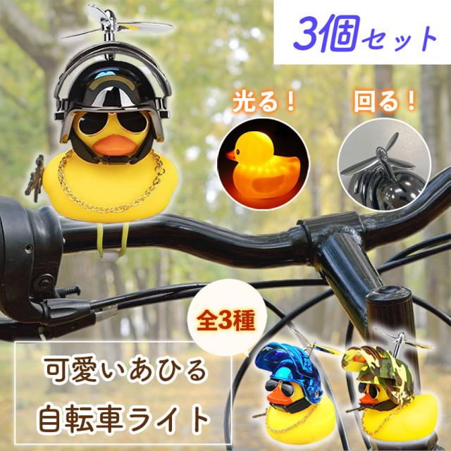 自転車ライト 3個セット 黄色 アヒル 可愛い 自転車 ベル プロペラ 搭載 音が出る 振動 ライト点滅 夜間 走行 バイク 車 ヘルメット 付き 車内 インテリア 取付簡単 ライト ホーン 光る 鳴る サングラス アクセサリー かわいい グッズ 小さい アニマル 電気 sns 子供 大人気
