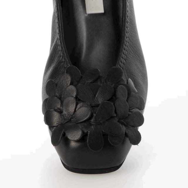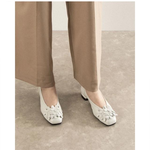 フラワーモチーフデザインのプレーンパンプス。