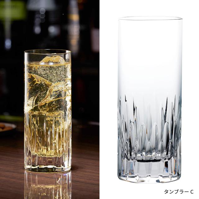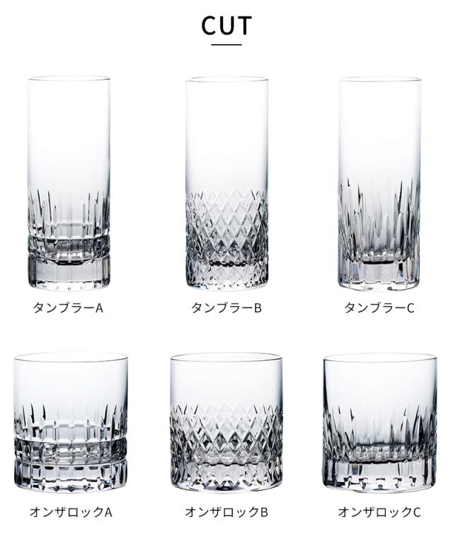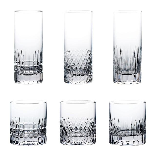 雰囲気の異なる3種類のカットを施した、クリスタル製のグラスシリーズです。12オンスのタンブラーと、オンザロックの2形状を揃えました。