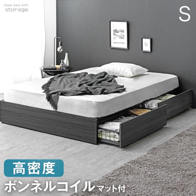 ベッド マットレス付き シングル 収納付き 頑丈 スチール ヘッドボードなし 収納ベッド 収納付き ヘッドレス スチールベッド シングルベッド ベット ボンネルコイルマットレス 引き出し付き