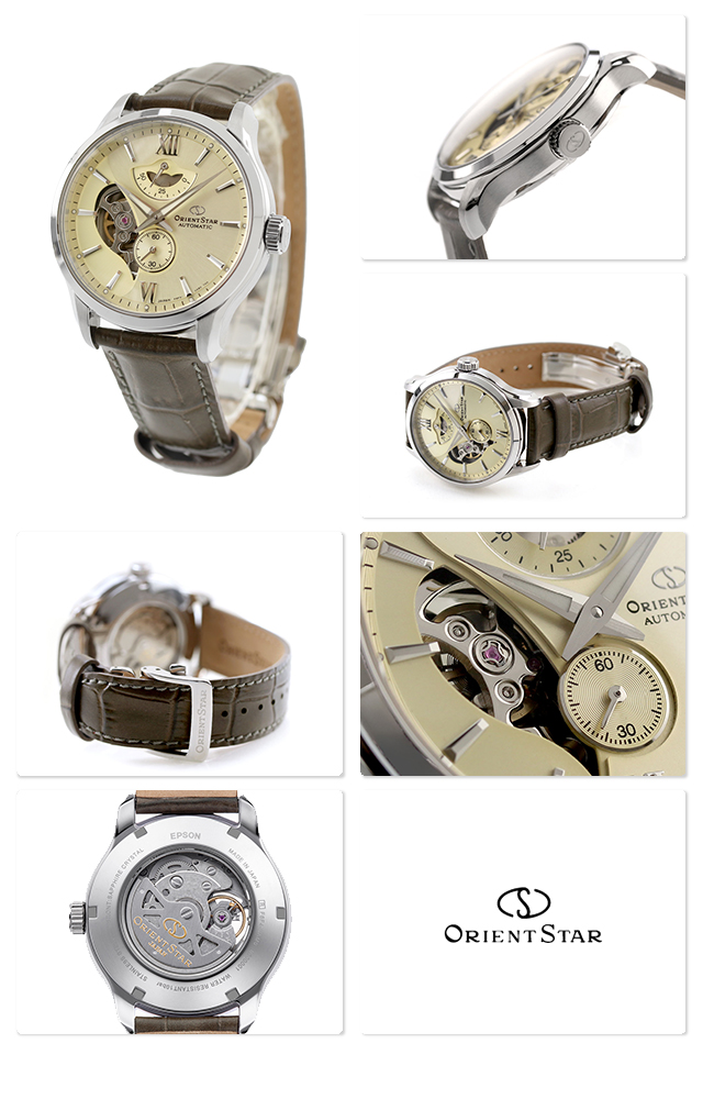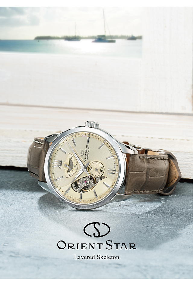 正規品 7年保証キャンペーン 送料無料 オリエントスター コンテンポラリーコレクション レイヤードスケルトン オープンハート 日本製 メンズ 腕時計 RK-AV0B10G ORIENT STAR Contemporary Collection Layered Skeleton アナログ シャンパンゴールド カーキ ◆オリエントスターは、1950年のオリエント創業と同時に輝ける星として生まれた代表的なブランドにふさわしく、歴史に裏付けされた技術と、ディテールにまで配慮した粋なデザインの機械式時計を展開。ベーシックモデルからハイスペックモデルまで多彩なラインナップが魅力です。 「F6 レイヤードスケルトン」は、スーツスタイルからジャケパンスタイルまですべてのビジネスシーンに対応した時計。2層に重なるダイヤルが織りなす奥行感と、ネクタイのディンプルや生地のドレープ感をイメージした緩やかなカーブを描くラグの形状がポイントです。誕生日や記念日のプレゼントにもおすすめです。 発売日:2025年3月発売 機械式腕時計