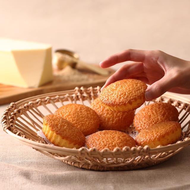 モンドセレクション最高金賞・ITI優秀味覚賞3つ星・DLG金賞の三冠を獲得。ほんのり甘くてシャリシャリしてる。フィナンシェでも、マドレーヌでもないやっぱりこれは“こがしバターケーキ”。