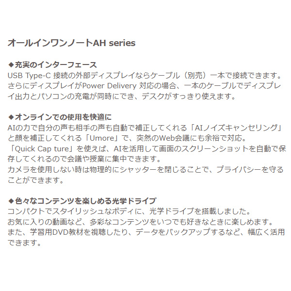 ■Webカメラ:フルHD Webカメラ(プライバシーカメラシャッター付)(有効画素数 約207万画素)