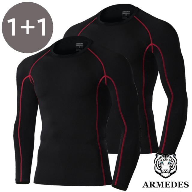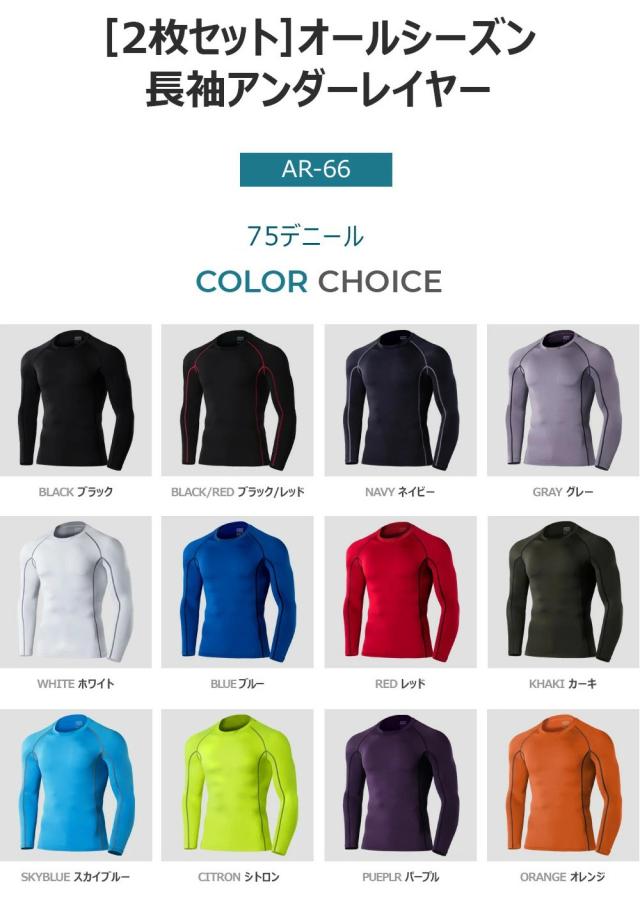 2枚セット 送料無料 ARMEDES アルメデス コンプレッション インナー Tシャツ 機能性 接触冷感 吸汗速乾 伸縮性 通気性 長袖 丸首 日常 トレーニングウェア ランニング フィットネス メンズ M-3XL 全12色 オールシーズン AR66