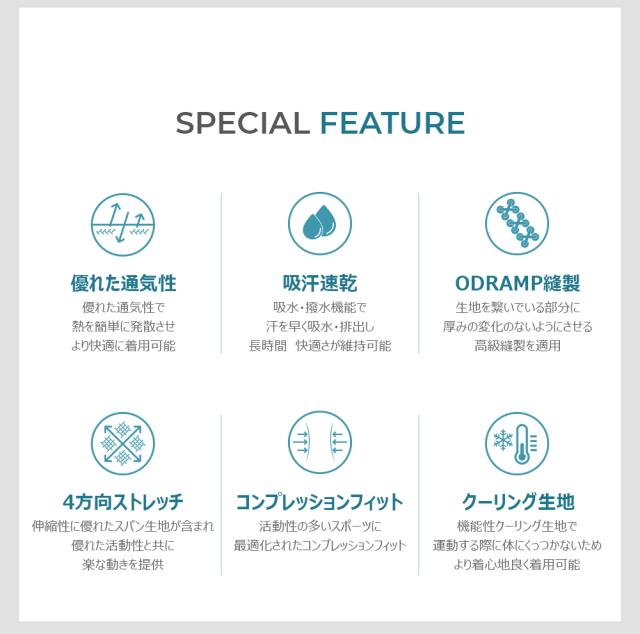 アクティブな毎日をサポートするARMEDESのコンプレッションウェアは、高機能素材を使用しており、接触冷感、吸汗速乾性に優れています。肌に触れると涼しさを感じる接触冷感機能で、暑い季節も快適に過ごせます。また、素材の優れた伸縮性と通気性が、激しい運動中でも体をサポートし、動きやすさを保ちます。