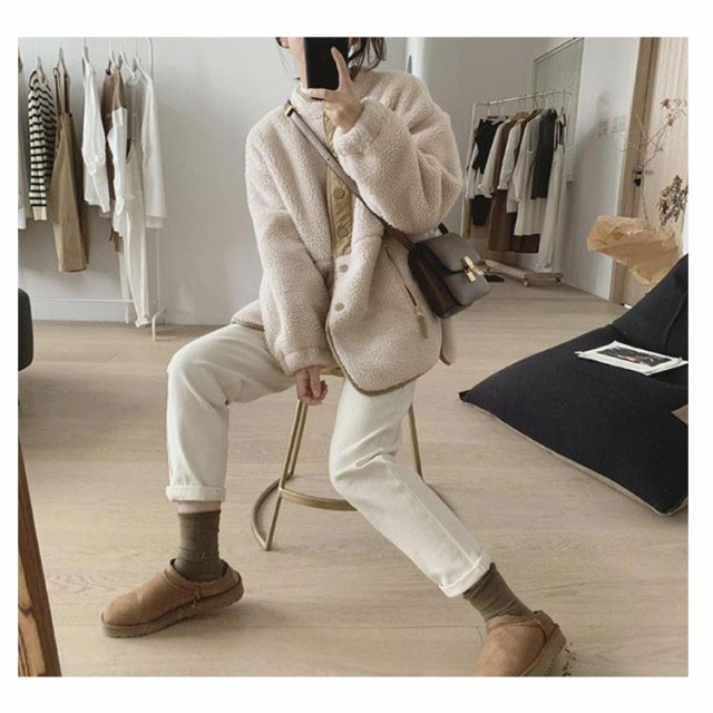 | ・ノーカラーボアミドル丈コート ・ふわふわボアのボリューム感のあるミドル丈コートです。 ・柔らかくふんわりとした素材感 | |