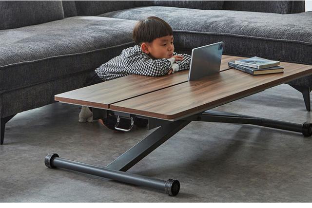 リフトテーブル 昇降式テーブル 幅120cm メラミン天板 高さ調節 ローテーブル 昇降テーブル おしゃれ 北欧 ナチュラル モダン カフェ センターテーブル ワークデスク ダイニング 折りたたみ(