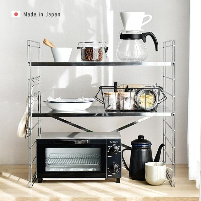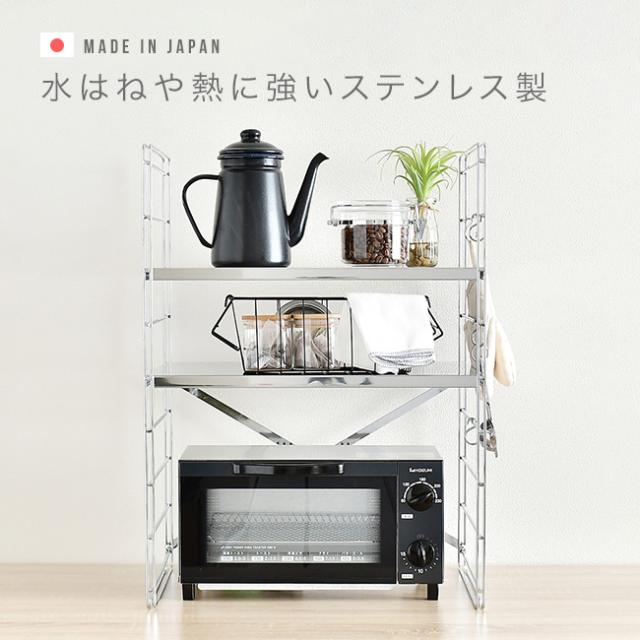 キッチンラック 足立製作所 日本製 食器棚 トースター 電子レンジ レンジ上 ラック レンジ上ラック ステンレス 丈夫 レンジ上の台 レンジ上収納 収納ラック