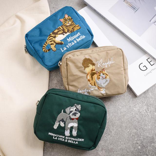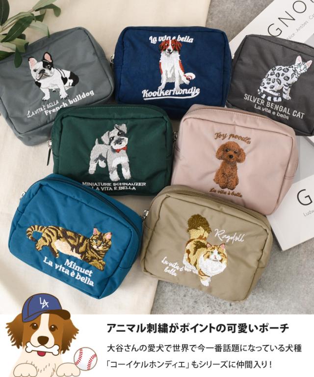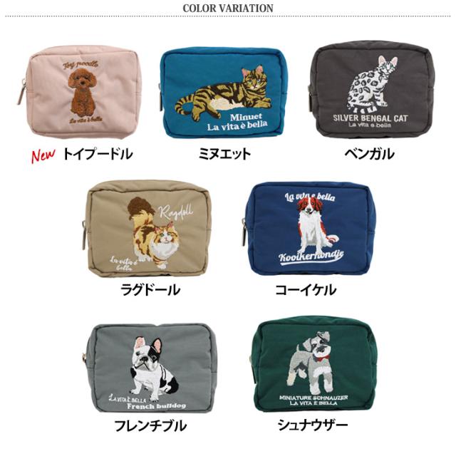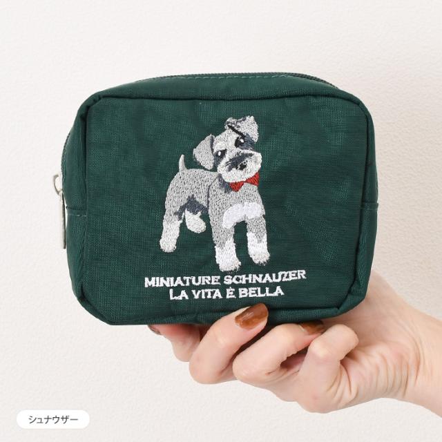 新作 ポーチ 小物入れ レディース ミニポーチ アニマル 刺繍 シュナウザー 犬 ラグドール 猫 小さめ 軽い 撥水 マチ付き 小物 化粧ポーチ ネコ イヌ 動物 持ち歩き 旅行 かわいい シュナ ミニチュア